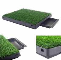 A tálcával és műfüvénnyel ellátott kisállat WC-nk hatékony segítség lesz a tisztasági edzéshez! Ez a szőnyeg tökéletesen utánozza a valódi füvet mind megjelenésében, mind tapintásában, így kutyái szívesen elboldogulnak rajta. Az anyagok, amelyekből az edző WC készül, biztonságosak a gyermekek és az állatok számára. Ráadásul a rács elvezeti a folyadék a kisállattól, a kivehető alsó tálcára, ami megakadályozza a szennyeződéseket és a kiömlést. A WC könnyen tisztítható. Tartsa tisztán otthonát, és ismertesse meg kis kedvencét ezzel a speciális, kényelmes WC-vel! Szín: zöld-fekete